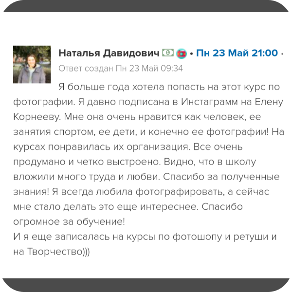 Более 22.000 учеников онлайн-школы по фотографии по всему миру - Успешный Инстаграм-блогер с 2 млн подписчиков (@karneeva_elena)