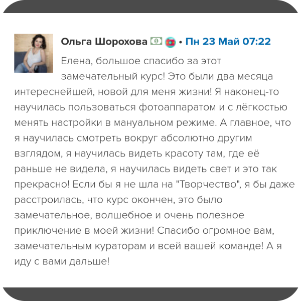 Результатом изучения материалов внимстанет новый уровень вашей фотографии — и это будет только начало удивительного и увлекательного пути и новой жизни!