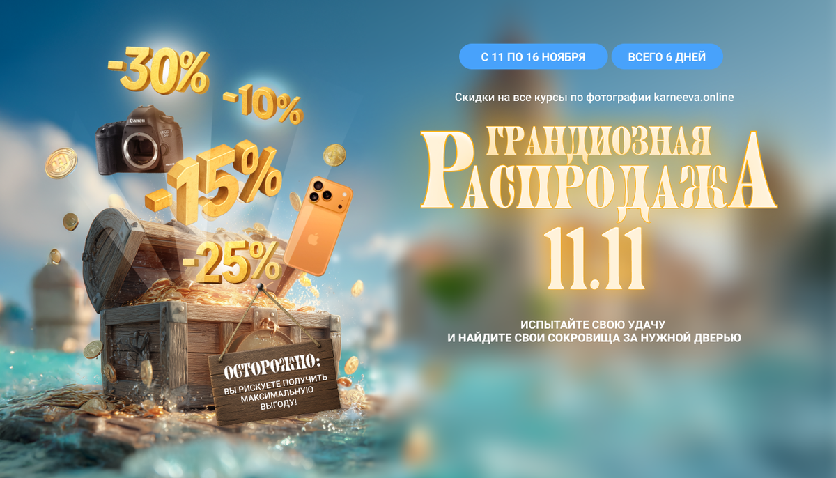 С 11 по 16 ноября в фотошколе Елены Карнеевой проходит грандиозная распродажа!