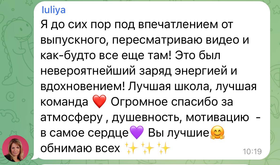 Выпускной подарит вам энергию и вдохновение, с помощью которых вы легко и радостно пройдёте обучение!