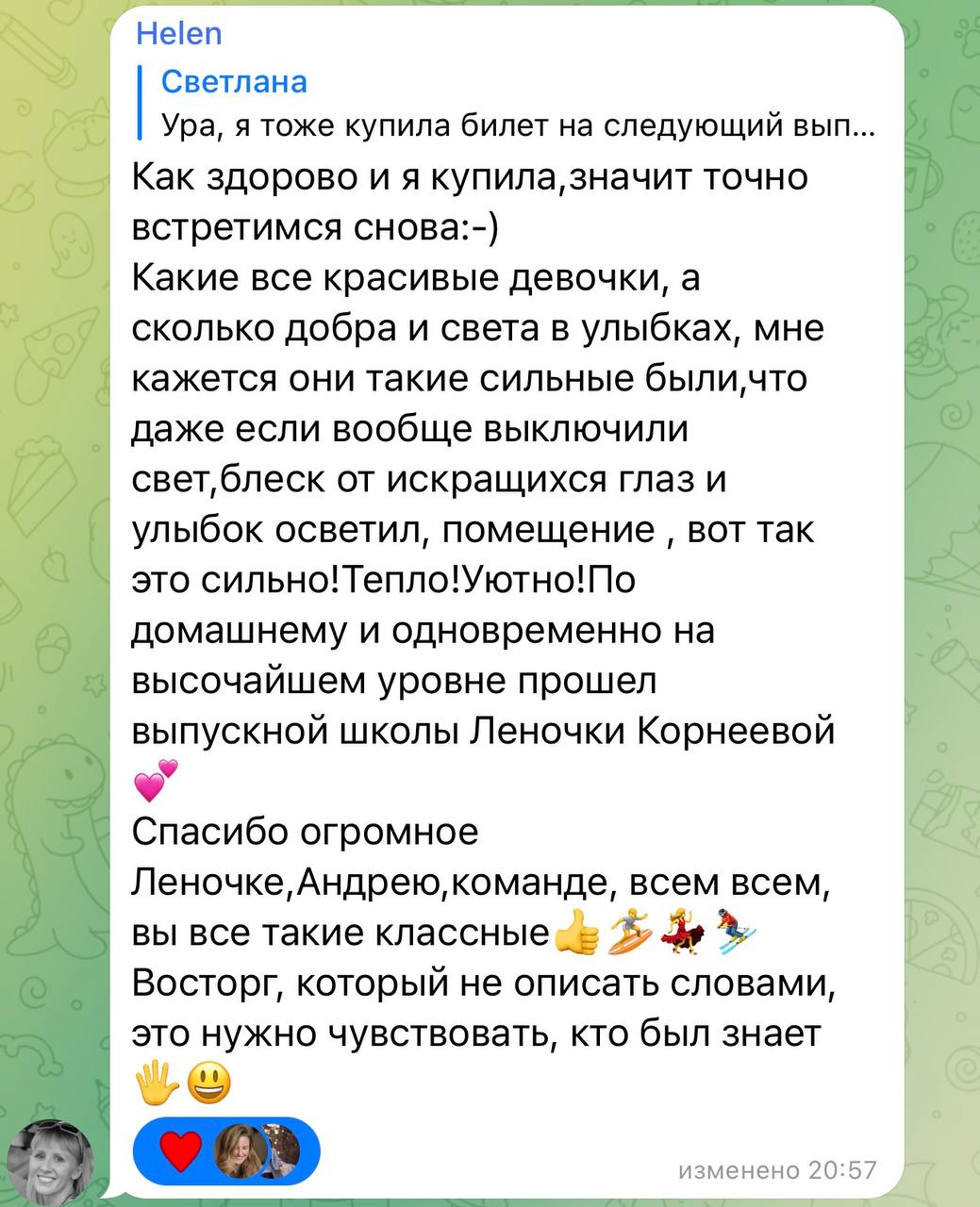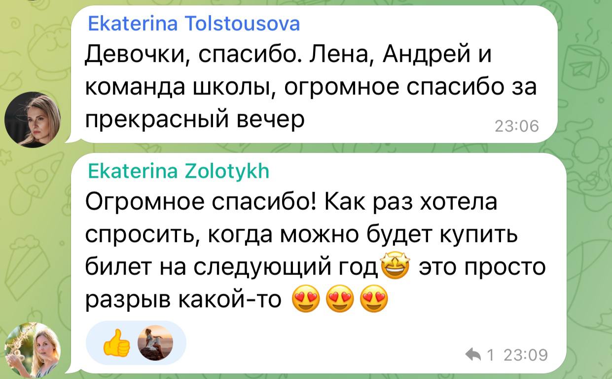 личное знакомство с Еленой Карнеевой, командой школы и единомышленниками